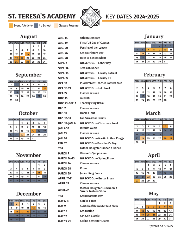 St. Teresa’s Academy is sponsored by the Sisters of St. Joseph of Carondelet (CSJ) and accredited by Cognia (formerly North Central Association/AdvancED).